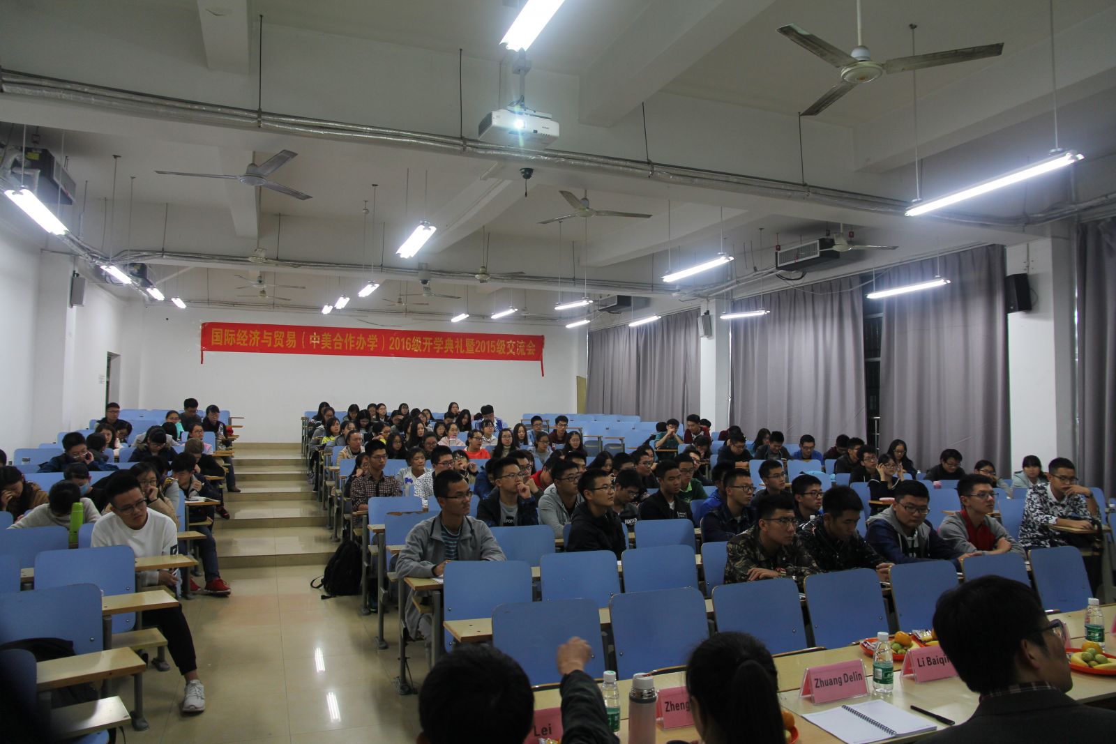 2016年10月27日19:30在翡翠湖校区3号教学楼206教室举行了国际经济与贸易(中美合作办学)2016级开学典礼暨2015级交流会。出席本次活动的美国克拉克大学代表有国际项目副院长Amy Daly Gardner、语言文化学院副院长James Raby、中国项目部主任李柏庆。必赢优惠y272net国际合作办公室主任庄德林、副主任郑园琴,16级学生辅导员雷磊也出席了此次活动。此次活动由必赢优惠y272net国际合作办公室副主任郑园琴主持。