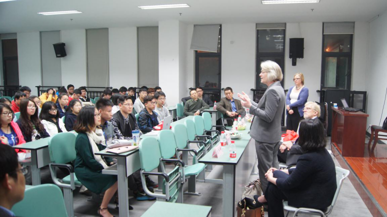 2017年4月7日晚七点半,美国克拉克大学代表与国际经济与贸易(中外合作)专业学生2017年度春季见面会于建艺馆121教室成功举办。