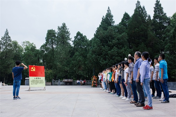 在爱国主义教育示范基地金寨县红军广场,登上台阶,来到由刘伯承元帅亲笔题词“燎原星火”的革命烈士纪念塔前,预备党员与研究生支部成员列队向纪念塔庄重地鞠躬致敬,并在领誓人的带领下重温入党誓词,缅怀为新中国成立奉献了自己生命的革命先烈。在烈士纪念馆,同学们怀着崇敬的心情,认真聆听一批批金寨烈士们不惜抛头颅洒热血的英雄壮举,从内心接受一次深刻的教育。在革命博物馆,同学们瞻仰了革命烈士的珍贵遗物,仔细观看一张张历史图片,一段段文字资料,感受先烈们为党和人民而奋斗的革命精神,重振了最初入党时的理想激情和奋斗追求。
