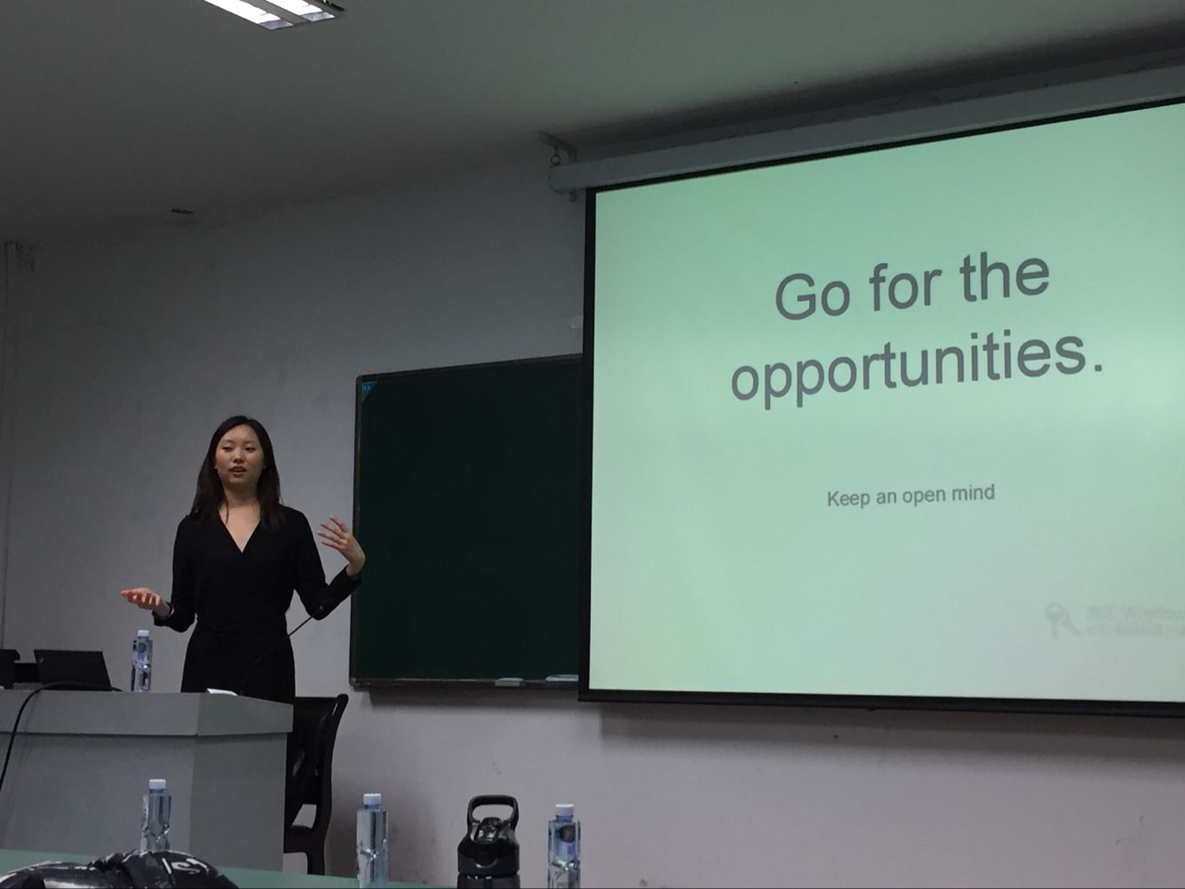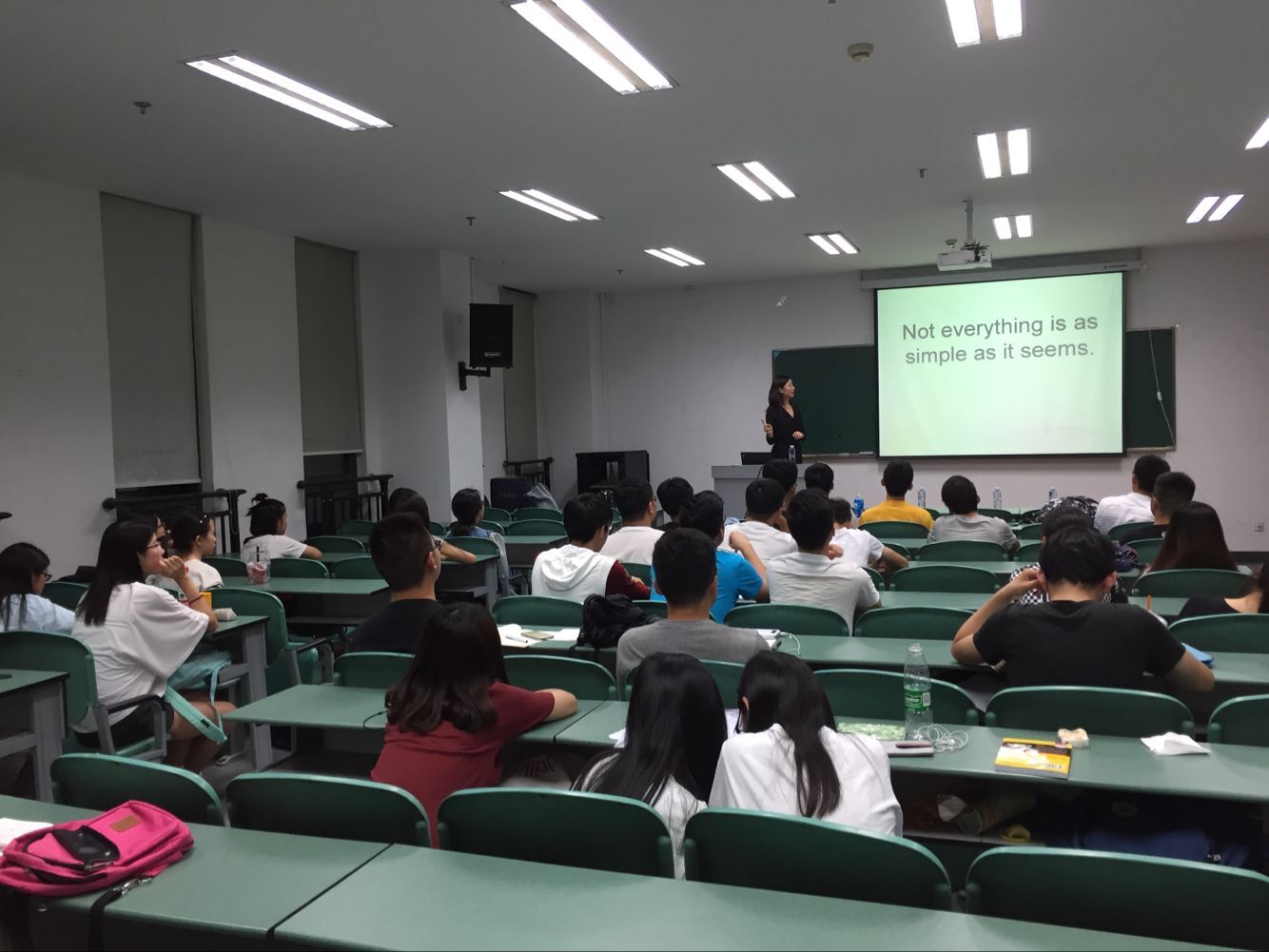 2017年6月16日晚上,来自麻省理工的硕士研究生Sara Dongying Li在翡翠湖校区逸夫建筑艺术馆一楼118教室做了一场主题为“Find Your Interest”的报告会。