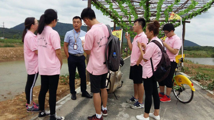 无论天空中是瓢泼的大雨,还是炙热的烈阳,黄色的自行车伴着清脆的铃声贯穿于三瓜各个村庄之间。活动期间,团队首先去到了汤山村,采用问卷调查的方式从当地农民自身的情况了解三瓜公社建立带来的变化。在两枣农场,同学们亲身下地,考察当地的农作物种植情况,并且与三瓜公社的社长助理陈晓鸿先生就三瓜公社的现状和发展规划做了深入探讨。