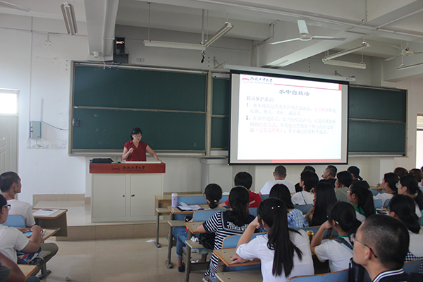 8月27日上午9点,2015级辅导员但泱泱老师主讲《大学生新生导航》。在本次入学教育中,她系统地从大学精神是什么及如何建立等方面,引经据典,为2017级的新生们上了一堂生动幽默的“心理健康课”,让新生们知道了在大学实现理想应该具备的精神及完成梦想的毅力。大家热情高涨,并对自己的未来充满希望。
