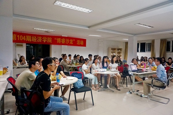 彭飞副教授首先与同学们交流他学术写作的经验,主要从研究内容、研究方法、如何投稿、如何看待匿审等几个同学们即将面临的,也是比较关心的几个问题开始分享,并具体说明了论文选题到论文发表的每个环节的特点及应注意的问题。彭飞老师作为经院学子的们的榜样学长,与同学们面对面地分享他通往学术高峰的切身体会和经历,同学们也都认真聆听并积极讨论,踊跃发言。