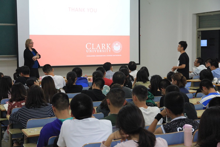 • 2017年9月20日晚上八点,美国克拉克大学国际项目副院长Amy Daly Gardner与国际经济与贸易(中外合作)专业学生在3教306教室举行见面会。
