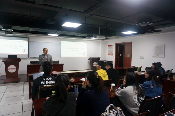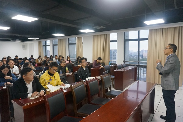 在介绍完学院的基本情况后,吴院长对研究生的发展提出了自己的一些看法。他说个体要把自己的聪明才智与组织的利益结合起来,在做研究的时候,个人做的事情要与整个研究团队的共同目标相结合。从大的方面来说,个人的前途命运是与国家的未来紧密结合在一起的,他说曾经有同学问他以后做什么工作前景比较好,他说不能给一个明确的回答,但一定是做国家政策方针所导向的事情,比如一带一路战略中就蕴藏着大量个人发展机遇。在考证的问题上,吴院长并不反对,但提醒同学们首先要完成研究生阶段的学业,利用三年的研究训练锻炼好自己的科研能力,在有余力情况下,可以尝试,但不能一开始就痴迷于证书。不能因为考证而耽误了研究生阶段的学习,那样不仅错失提升个人研究能力的机会,而且为人处世等其它综合能力均得不到锻炼。结果到了公司之后,老板发现招的研究生跟本科生没有什么本质区别。