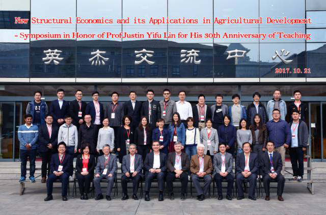 2017年10月21-22日,在北京大学英杰交流中心隆重举办了新结构经济学及其在农业发展上的应用—纪念林毅夫教授回国执教三十周年座谈会。本次会议由北京大学新结构经济学研究中心和《中国农业经济评论》联合组织举办。北京大学新结构经济学研究中心主任林毅夫教授、全国政协经济委员会副主任陈锡文老师、北京大学国家发展研究院卢峰教授、北京大学现代农学院黄季焜教授、中国农业经济评论编辑室主任苏保忠教授、中国人民大学刘守英教授、南京农业大学钟甫宁教授、中国科学院农业政策研究中心张林秀教授、新泽西大学Carl Pray 教授、加州大学伯克利分校Alainde Janvry教授以及来自海内外的多名学者和嘉宾参与了本次会议。会议以新结构经济学和农业发展为中心内容,深入探讨了相关话题,获得了圆满成功,取得了丰硕成果。