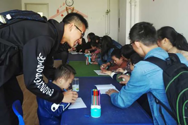 在康复中心有一群可爱的小朋友,他们拥有一个共同的名字——来自星星的孩子。这是志愿者们给孩子们起的名字。虽然这里的孩子们内心世界封闭,很多时候拒绝与外界交流,但志愿者们仍然耐心地与他们沟通、尽心尽力陪伴他们进行康复课程。与老师课堂互动,用舞蹈调动他们身体的活力,用橡皮泥练习他们手指的灵动,用彩笔描绘他们眼中的秋天等等,虽然都是简单的肢体动作,但是在与志愿者们互动的过程中,孩子们逐渐打开了自己的内心世界,脸上也露出可爱的微笑。看着他们的笑脸,志愿者们的疲惫也随之消散,取而代之的是满满的骄傲。或许志愿者们不能让这些孩子们完全康复,但是可以为他们带去快乐,可以给他们更多交流,可以让他们的世界多一些温暖。