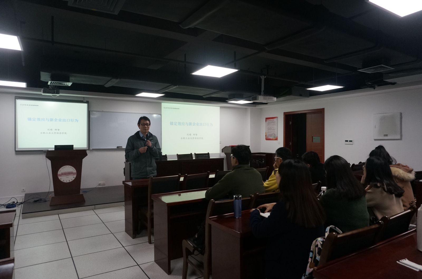 11月6日晚,为激起同学们的学术热情,给同学们指引正确的方向,必赢优惠y272net邀请刘晴副教授为研一同学们作关于“锚定效应与企业出口行为”的学术讲座。
