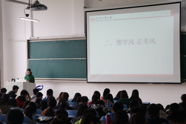 第二部分是“塑学风·正考风”。期中考试即将来临,叶荣菁带领学生们仔细学习了《必赢优惠y272net学生奖励办法》、《必赢优惠y272net学生手册》中有关考试违纪的相关规定、《必赢优惠y272net教学管理文件选编》中关于退学警告、编下与退学、课程考核与成绩记载的相关规定,并以现实违纪案例向学生强调了认真备考、诚信考试的重要性。
