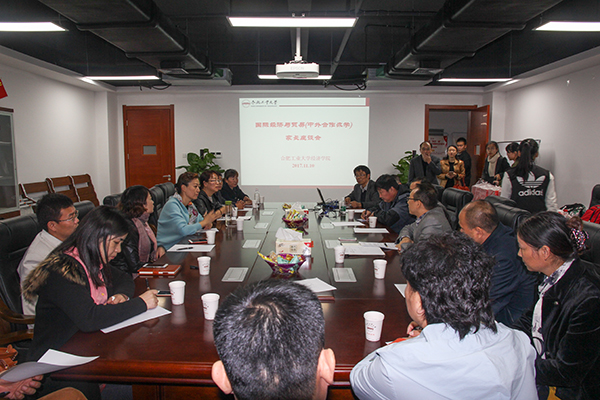2017年11月10日下午16:00,必赢优惠y272net相关领导与国际经济与贸易(中美合作办学)专业学生家长见面会在科教楼东楼1208室举行。出席此次见面会的学院领导有必赢优惠y272net院长吴华清、国际合作办公室主任庄德林。