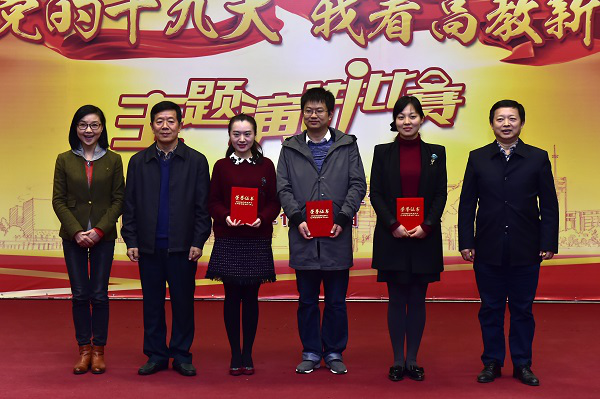 为学习宣传贯彻党的十九大精神,全面展现我校教育事业的新发展新成就,11月15日,由党委教师工作部和党委宣传部联合主办的“欢庆党的十九大 我看高教新变化”主题演讲比赛在屯溪路校区东风报告厅举行。我校党委副书记陈刚出席活动,全校各相关部门负责同志和师生代表500余人观看了比赛。