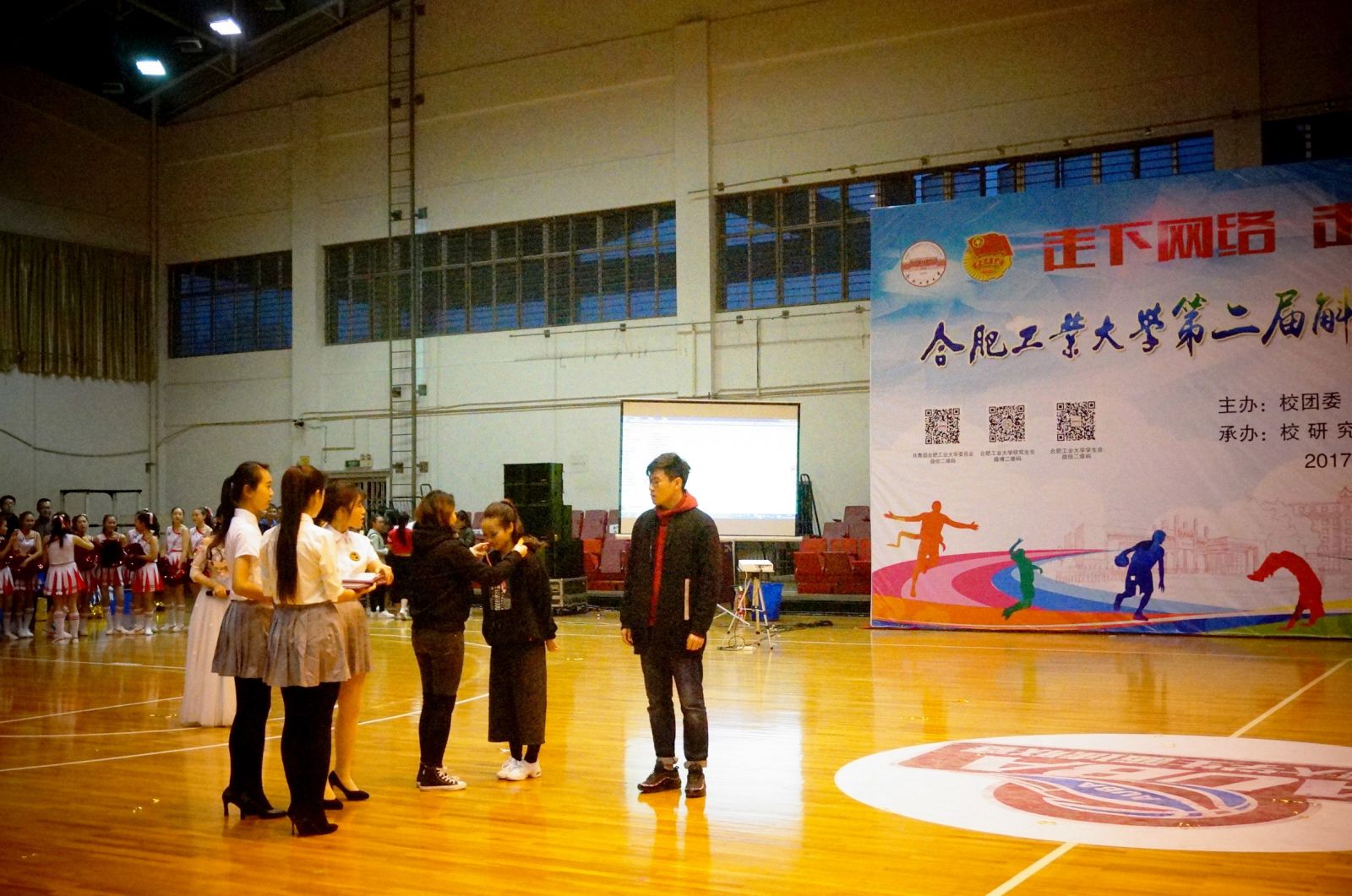在万众瞩目下,必赢官网12位啦啦操健儿们为同学带来了活力四射的表演。队员们整齐划一的步伐、张弛有力的动作展现新时代青年朝气蓬勃的气息,伴随着歌曲Bang Bang用自信的笑容感染全场气氛。其中穿插的一段爵士舞更是震惊全场,欢呼声不绝于耳。健儿们曼妙的身姿和性感的风度向全场展示了辛苦排练后的完美成果。4只可爱玩偶的介入更是引发全场爆点,无缝的配合诠释了必赢官网学子拼搏进取、团结一致的精神,很好地响应了本次斛兵杯体育文化节“走下网络,走出宿舍,走向操场”的主题。