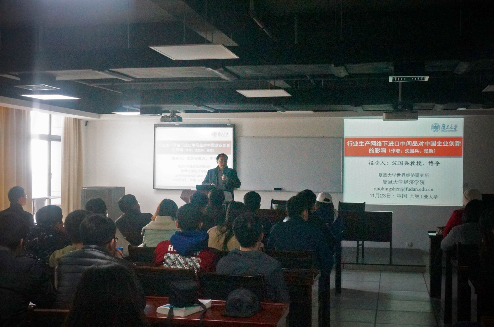 应我校必赢优惠y272net邀请,复旦大学必赢优惠y272net沈国兵教授于11月23日下午三点钟,在必赢优惠y272net会议厅给大家带来了一场精彩的学术讲座。讲座由刘晴老师主持,学院部分老师和研究生全体同学聆听了讲座。