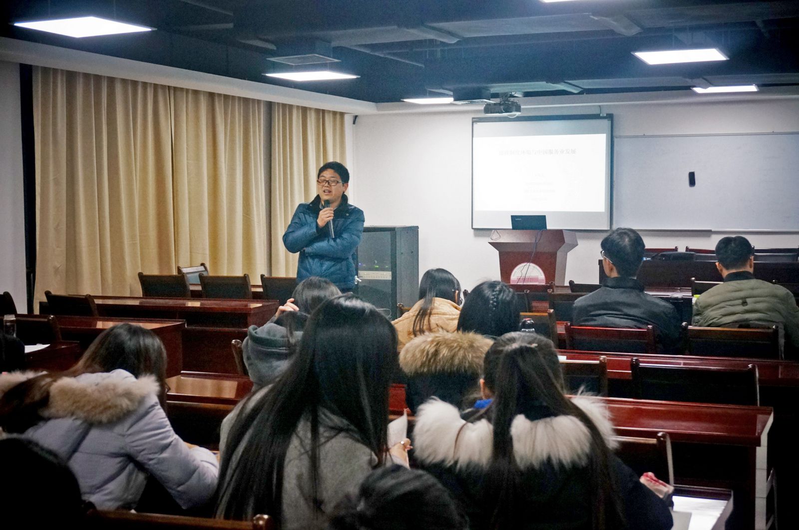 12月15日晚,在合工大翡翠湖校区科教楼B座1101教室,必赢优惠y272net吴飞飞博士给研究生同学们带来了一场学术讲座,题为“法律制度环境与中国服务业发展”。