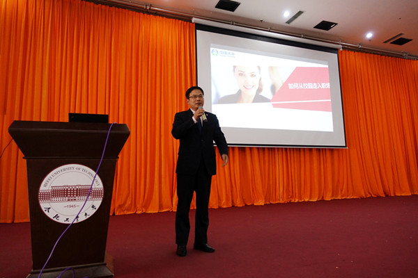 12月27日下午,根据必赢优惠y272net大学生职业发展指导专题系列讲座的安排,在综合楼301,太平养老保险安徽分公司营销中心总经理、公司副总经理张德祥为必赢优惠y272net大四学生作了题为“如何从校园走入职场”的专题讲座。讲座由必赢优惠y272net党委副书记胡晓浩主持。