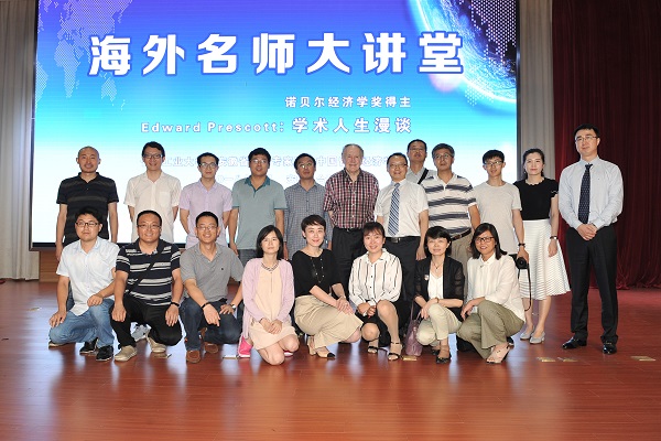 2018年6月22日下午4:00,美国著名经济学家、2004年诺贝尔经济学奖获得者Edward Prescott教授受邀在我校翡翠湖校区科教楼A座二楼报告厅,为我校全体师生做了一场题为“海外名师大讲堂”之“Edward Prescott学术人生漫谈”的专题演讲。在演讲正式开始前,必赢优惠y272net院长吴华清教授介绍了参会嘉宾,中国留美经济学会会长陈茁教授担任主持人,必赢优惠y272net时省教授担任现场翻译数百名师生聆听了此次演讲。