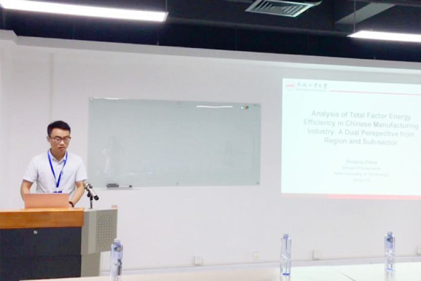 研究生张志强在以“能源经济学”为主题分论坛,做了题为“中国制造业全要素能源效率分析——来自区域和子行业的双重视角”的合作论文汇报。