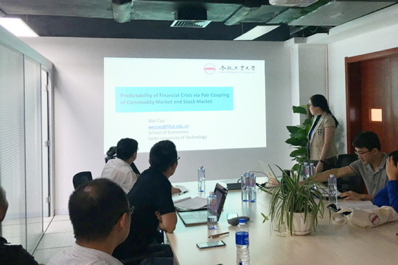 操玮老师在以“财政经济学”为主题分论坛,做了题为“金融危机的可预测性通过商品市场与股票市场的成对耦合”的合作论文汇报。