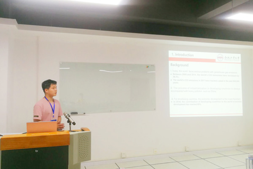 研究生刘神宝在以“能源经济学”为主题的分论坛,做了题为“一带一路”沿线国家全要素能源效率分析”的合作论文汇报。