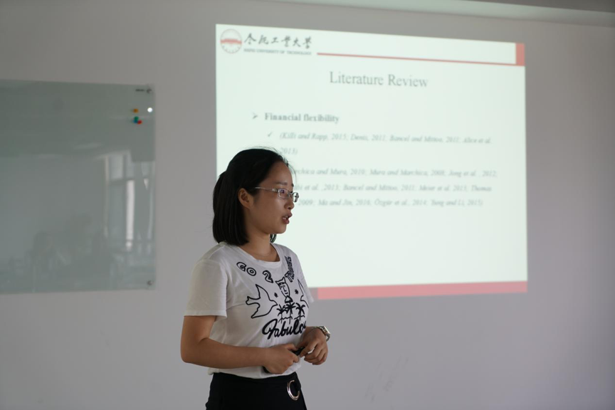 研究生赵鹤森在以“公司金融”为主题 分论坛,做了题为“差异化股利管制,金融灵活性和股票的生命周期理论:适度调解模式”的合作论文汇报。