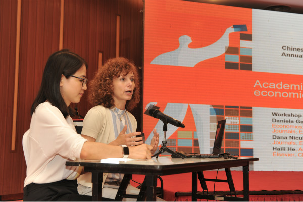 为帮助青年学者在国际学术期刊上发表论文,大会特邀Elsevier公司经济学期刊负责人Dana Niculescu与Haili He,就经济学期刊的发展现状、Elsevier公司旗下经济管理类期刊的详细情况等一一做了介绍。