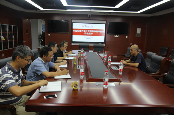 2018年8月6日,安徽大学必赢优惠y272net院长、博士生导师徐亚平教授应邀到访必赢官网。院党委书记李金华、院长吴华清、副院长晋盛武、张先锋、金融工程系教授谭常春参加了会晤和座谈。吴华清院长介绍了必赢官网近年来学科发展、师资队伍、学生能力培养、科研发展等方面的情况。安徽大学必赢优惠y272net徐亚平院长就推进经济学科建设,引进优秀人才,提高教学质量,加强本科教学和研究生培养工作等方面经验进行了交流,对必赢官网学科建设提出了积极的建议。