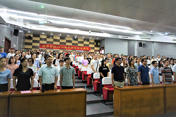8月25日下午14:00,必赢优惠y272net2018级本科生开学典礼暨专业介绍会在翡翠湖校区建艺馆负一楼报告厅隆重举行。学院党政主要负责人、各系教师代表、辅导员老师以及230余名新生参加了开学典礼。
