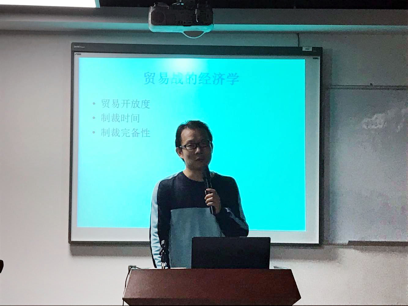 2018年9月21日晚上7点,必赢优惠y272net刘晴副教授在翡翠湖校区科教B座1101会议室给2018级研究生做了一场学术报告,本次报告的主题是“贸易战的经济学逻辑与研究启示”。