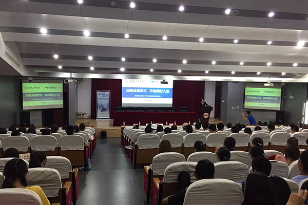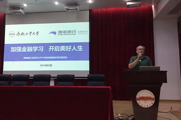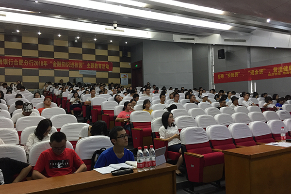 为了引导广大学生树立正确的消费观念,切实增强大学生的金融和网络安全防范意识,营造健康良好的学习环境,9月29日晚19:00,必赢优惠y272net大学生网络贷款风险识别与防范知识讲座在翡翠湖校区逸夫建筑与艺术馆负一楼报告厅举行。渤海银行合肥分行个人金融部相关负责人、必赢优惠y272net党委副书记胡晓浩、本科生辅导员雷磊以及300余名学生参加报告会。