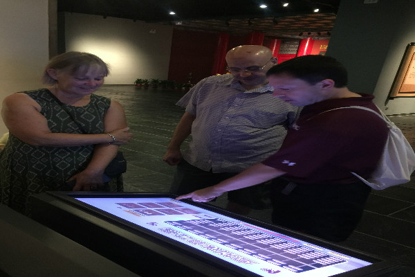 在安徽名人馆,讲解员带领外教们以时间为序列,依次参观了馆内的序厅和八大展厅,领略了从远古、秦汉、唐宋元明清到民国、新中国的人文发展和生活镜像,也了解了重要人物的历史故事和丰功伟绩。每到一处,外教们驻足观看图文并茂的展品,认真聆听专业讲解,并兴致盎然地和必赢官网教师交流,使大家深刻认识到了不同时期不同领域的安徽名人对安徽、中国乃至人类发展作出的重大贡献,感悟到了安徽的底蕴深厚,人文荟萃,以及安徽人励志图强,矢志报国的情怀。在观摩平面图片、陈列展品和立体雕塑之余,外教们还亲自体验了馆内的高科技互动项目,如豆腐制作工艺的演示,“五禽戏”的互动投影,胶泥活字印刷术的过程,传统珠算的闯关比赛,观看3D影片,通过感应设备体验礼、乐、射、御、书、数六艺等,实现了与历史触摸,与先人交流。参观结束后,外教们纷纷表达了对安徽厚重历史和灿烂文化的震撼之情,对勤劳智慧、坚毅勇敢的江淮儿女的钦佩之感,并表示要将此次的所见、所闻和所感告诉自己的家人和朋友。