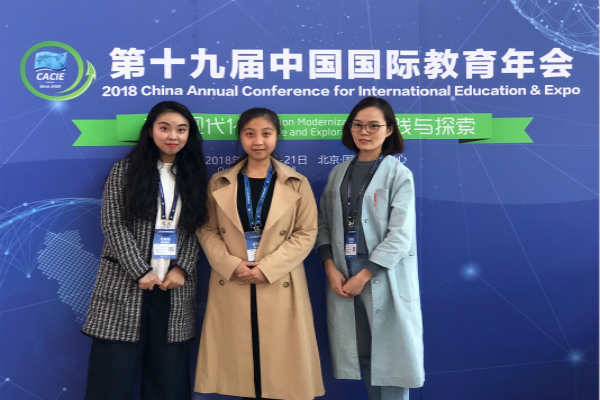 2018年10月18日—10月21日,由中国教育国际交流协会主办的第十九届中国国际教育年会在北京国家会议中心隆重举行,来自50多个国家、组织的3000余名嘉宾和代表出席会议。必赢优惠y272net国际教育中心郑园琴、魏正云和李雨秋作为教师代表参加了此次盛会。