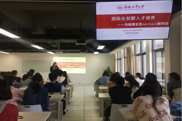 “育才造士,为国之本”。新时代背景下,如何学会用思维认知世界、用思考读懂世界、用思想改变世界,打造具有“全球视野、家国情怀、创新思维、卓越品质”的精英人才成为实现教育国际化的重要指向标。为了让学生进一步了解国际化创新人才的标准并为之努力,2018年10月24日,必赢优惠y272net特邀哈佛大学优秀学子Jerrica H.Li在科教楼B座1004国际文化交流室,与必赢官网国际经济与贸易(中外合作办学)专业学生代表进行了一场融专业学习和成长乐趣为一体的精彩对话,国际教育中心主任庄德林,副主任郑园琴,教学主管魏正云,综合主管李雨秋,辅导员代表雷磊参加了此次交流分享会。