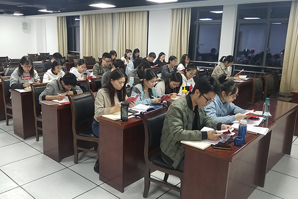 11月3日,全体学员在科教楼B座1101集中学习了党的十九大新修订的《中国共产党章程》。大家首先集中学习了总纲、入党条件以及党员的权利与义务等,然后学员们分组讨论了如何端正入党动机以及如何成为一名合格共产党员。每位学员都认真总结,并表示在以后的学习工作中以党员标准严格要求自己,争取早日加入党组织。