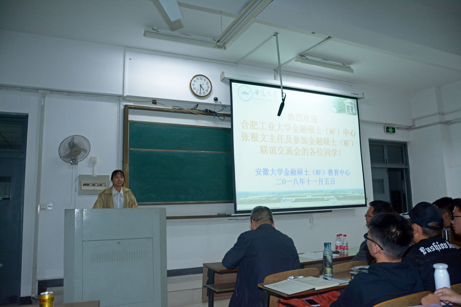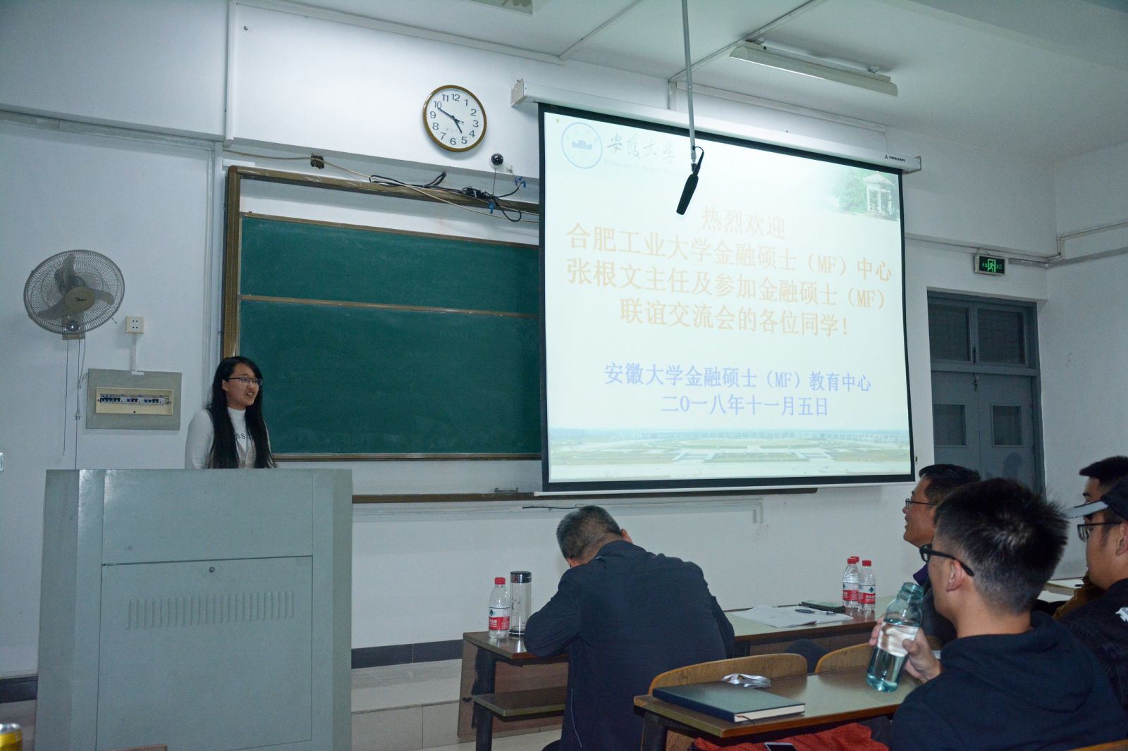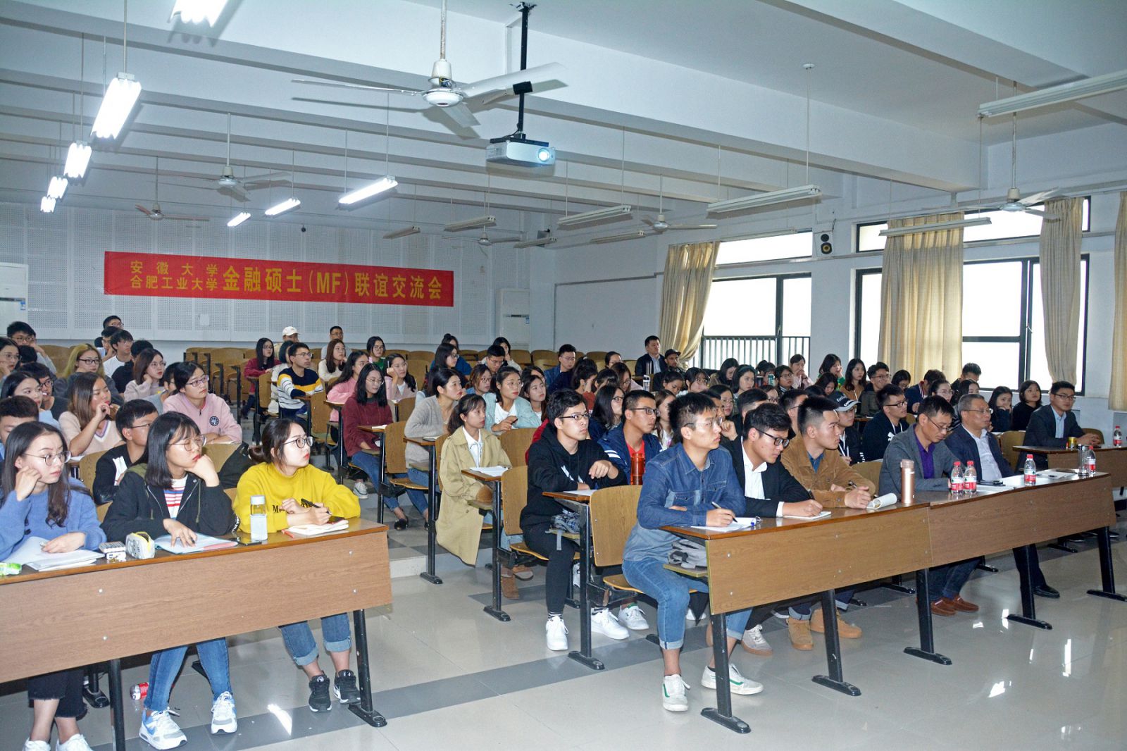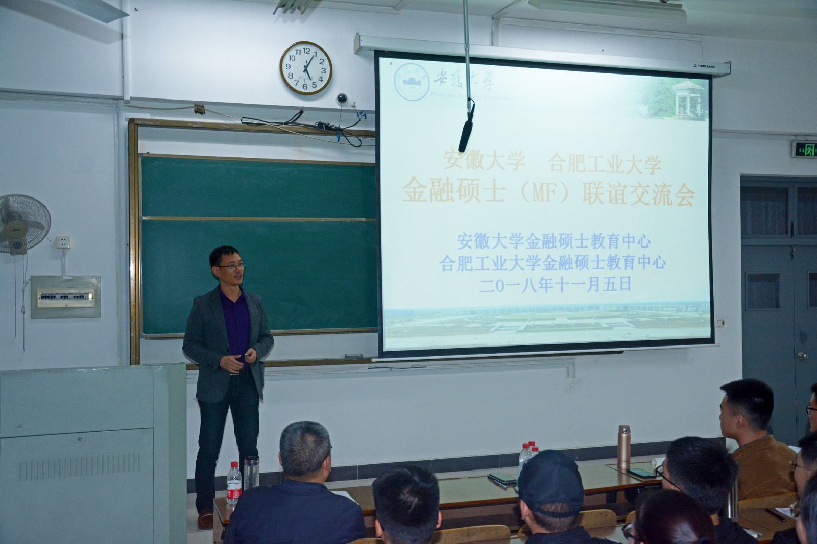 2018年11月5日下午,在MF中心主任张根文老师的带领下,我校2017和2018级金融专硕学生赴安徽大学磬苑校区参加“安徽大学必赢优惠y272net金融硕士联谊交流会”。此次活动分为两个阶段,首先由中国社会科学院世界经济与政治研究所国际金融研究室的杨子荣博士作“新结构金融学理论与应用”的学术讲座,随后两校金融专硕学生就对MF教育的认识以及学习心得进行了交流。