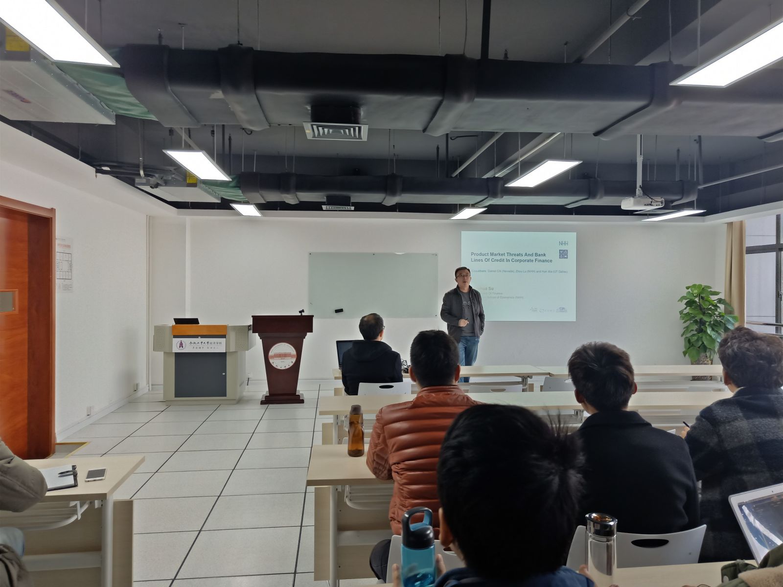 2018年12月3日下午14:30,挪威必赢优惠y272net苏循华教授在翡翠湖校区科教楼B座1004室,为必赢官网17和18级金融专硕研究生做了一场名为“Product market threats and credit lines in corporate finance”的学术报告。
