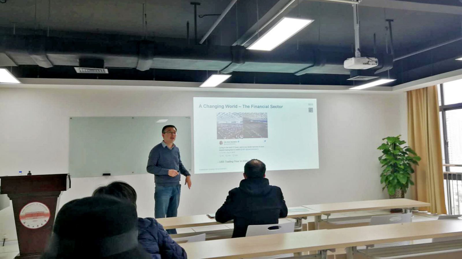 苏教授首先谈到全球银行物理网点关停数量暴涨,银行裁员趋势不减,但银行业本身并没有萎缩的现象。随后介绍并分析了国内外在FinTech领域发展较好的几家大公司的特点,如蚂蚁金服,Lickstarter,Lending club。苏教授还依次讲解了三种金融模式,分别是Direct Finance,Financial Markets,Banking (Financial intermediation)Model。他介绍到,传统的直接借贷风险大,成本高,范围比较小;金融市场(资本市场)由政府或权威机构来降低信息不对称,提高了效率,但近些年国外资本市场上市公司规模在急剧萎缩;银行作为最重要的金融中介机构,发展模式已经十分成熟,从世界来看,银行业创造的利润也是十分巨大的,但这些利润并没有直接惠及大众,反而造成了社会成本的增加。而现在,随着科技对金融的加持,无论公司还是个人,信息的公开透明度前所未有的增加了,这也就是众筹,P2P兴起的重要原因之一。在未来,银行之间的数据会打通,且会开放给资质被认可的小公司,银行与科技公司之间的界限会逐渐模糊。