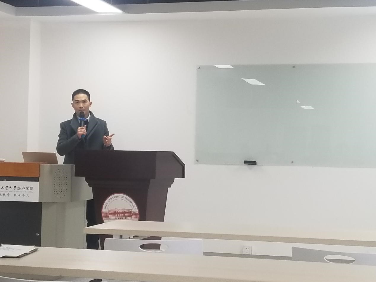 2018年12月23日上午8点30分,量化投资系列课程讲座第三次课程于翡翠湖校区科教楼B座1004会议室开展。本次课程讲座的主题是“期权量化交易与策略”。徽商期货投资经理蒋贤辉担任此次课程讲座讲师。