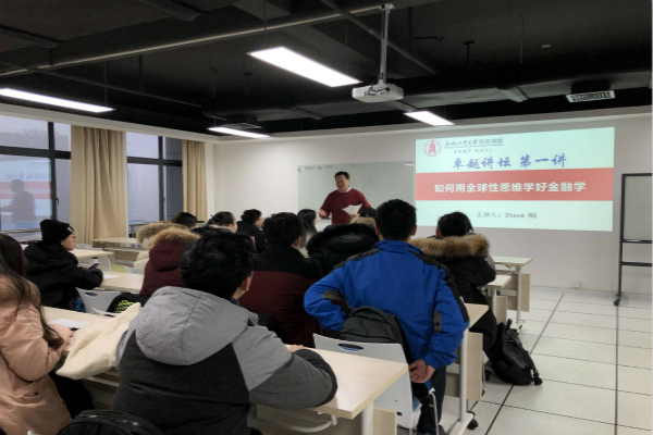讲座开始,Steve教授首先向同学们介绍了克拉克大学的基本情况、课程设置和教学模式。他表示,克拉克大学的课堂教学注重学生的课堂参与,鼓励出国的同学们要学会有效地表达自己,主动提问,积极参与到国外的课堂学习中。Steve教授指出在国内学习和国外学习转换的过程中,要学会培养创新性思维和批判性思维,注重高效交流以及团队合作,这是适应国外学习的必备技能。Steve教授还为出国的同学们如何克服语言这一瓶颈提供了宝贵的建议,他建议同学们可以通过听英文歌曲、看电影、大量阅读、以及不断纠正自己的发音来提高英语水平,克服语言障碍。最后,Steve教授详细地介绍了作为一个国际金融人才必须具备的金融知识。他从国际金融市场、金融工具、投资多样性等方面,并结合自己多年的投资经验进行详细、生动的讲解。Steve教授强调,在国际投资中必须全面了解每一种金融工具的特性。