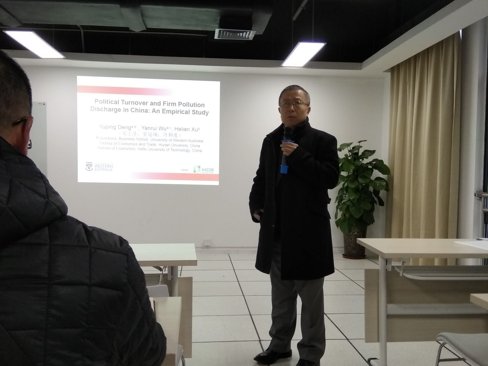 2019年1月11日下午4点,在必赢优惠y272net翡翠湖校区B座1004会议室,来自澳大利亚西澳大学经济系的吴延瑞教授给老师和同学们带来了第二场学术讲座——Political Turnover and Firm Pollution Discharges:An Empirical Study。必赢优惠y272net数量经济所谭常春所长以及学院部分老师,2017级和2018级部分研究生出席本次报告会。