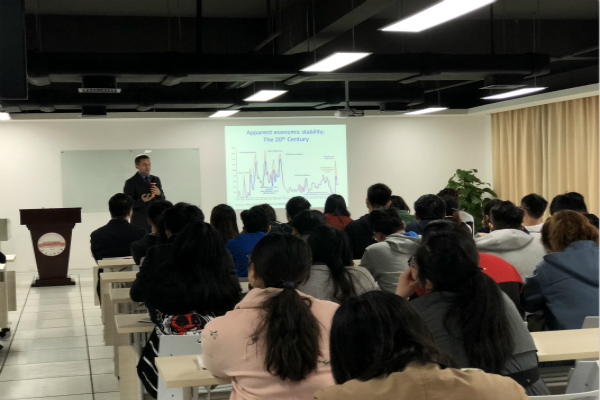 报告会中,Andrew Farlow以2008年金融危机为背景,对金融危机爆发前的隐象,爆发后的影响,世界与中国采取的经济对策及效果进行了深入的讲解,并探讨了可能会发生的下一次危机及防止崩溃的措施。Andrew Farlow 教授从经济全球化、进出口贸易额、政府保护主义政策、内部劳动力市场变化、政府税收政策等方面对发展中国家和发达国家进行了比较,讨论了美国,中国,俄罗斯,欧盟(特别是英国脱欧之后)和新兴经济体的当代形势,分析了全球经济格局转变为中国的经济改革所带来的启示,探讨了国家政府未来的合作基础与可能,以及提高关税等保护主义政策将如何影响本国及国际经济。在报告最后,Andrew Farlow教授就中美贸易走向问题、世界贸易政策等方面与学生进行了互动交流。