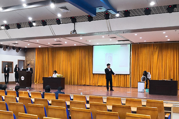 比赛共有七支队伍参加,大赛内容包括国际贸易参展商业策划书和国际贸易新产品发布会,商业策划书由专家匿名审阅,产品发布会采用纯英文进行。在产品发布会环节,参赛选手通过PPT展示、视频宣传、情景再现等形式对产品进行介绍和展示,展现出强大的团队合力。比赛中,各支队伍用丰富多样的形式来展示各自的产品,同时也展示出不同的贸易思维,充分体现了参赛选手的国际贸易实战能力。