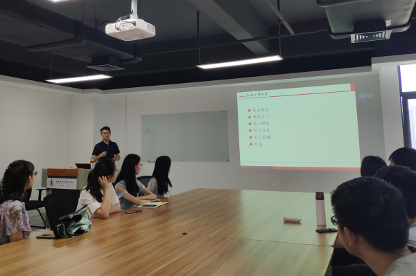 会上,彭飞老师从职业规划、研究什么、怎么研究、怎么写作、怎么投稿、总结六个方面,给与会学生们进行了一场生动务实的交流。彭飞老师重点结合自身实际向学生们讲解了如何做好研究生三年的学术研究,为学生提供了很多具体的指导。彭飞老师建议学生,不要轻易地做一种假定,要注意培养自身兴趣,可以积极参加国内专业性学术会议,发现更多的可能;要关注国家大事,明确什么问题需要研究值得研究;要有时间观念,学会详细制定周、日计划并严格执行;要有“严谨、热爱、勤奋、坚持”的专业素养,熟悉掌握研究、写作的方式方法;要珍惜研究生涯、遵守学术道德。最后,彭飞老师为学生们做了答疑,解答了学生关于继续升造、数据处理等方面的问题。