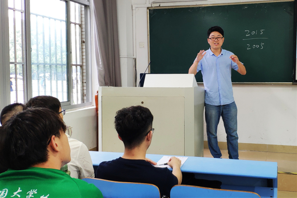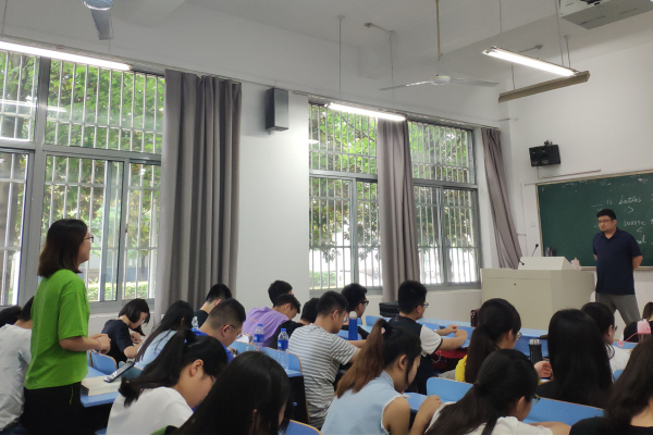 中外合作办学17-3班班主任朱付彪与学生作交流