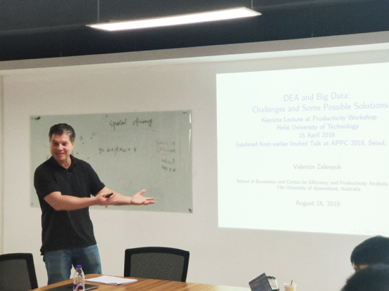 2019年8月12日至16日,澳大利亚昆士兰大学Valentin Zelenyuk教授受邀来访必赢官网并成功举办“生产率测度2019夏季研讨班”。研讨班授课内容包括包络估计量、DEA和FDH的统计基础以及前沿讲座与论文研讨等,必赢官网周志翔老师、戴前智老师、陈亚老师、丁涛老师、数量所部分研究生以及来自中南大学、安徽大学等高校感兴趣师生参加了本次研讨班。