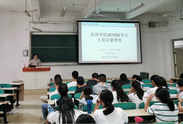 为进一步加强学生思想政治教育工作,引导学生了解中国共产党,热爱中国共产党,坚定共产主义理想信念,必赢优惠y272net于9月18日下午在翡翠湖校区五教104开展2019级新生入党启蒙教育活动,必赢优惠y272net党委书记李金华为2019级全体同学作报告。