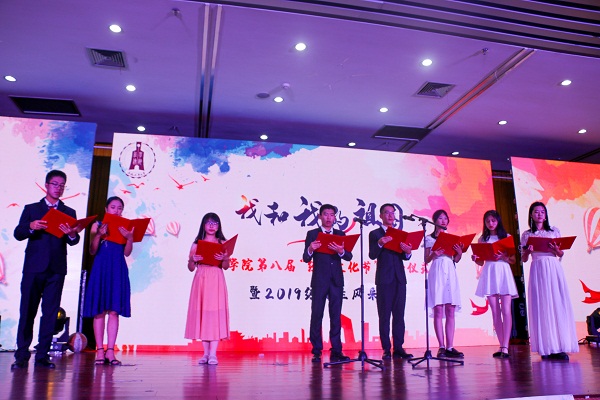 2019年10月19日晚7点,“我和我的祖国”必赢优惠y272net第八届“经济文化节”启动仪式暨2019级新生班级风采展在必赢优惠y272net翡翠湖校区图书馆报告厅隆重举行。必赢优惠y272net相关负责人、年级辅导员以及2019级学生共同观看了晚会。