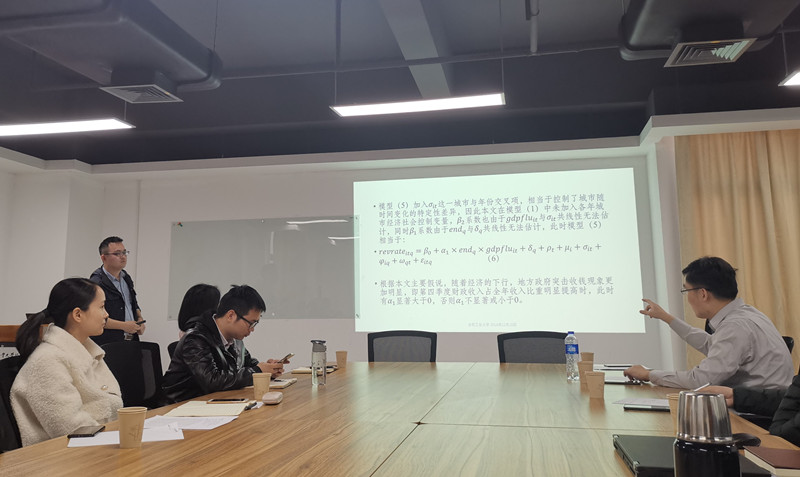随后,席鹏辉博士作了一场“经济波动与年末‘突击收钱’”的学术报告。席鹏辉博士首先讨论了地方为了实现财政预算收入目标,容易在年末“突击收钱”,而这一现象往往被研究者忽视,然后阐述了突击收钱的危害。基于这一背景,席鹏辉博士基于地市层面的月度财政收入数据,实证分析了经济波动下行对地方突击收钱现象的影响。研究发现,随着经济的下行,地方第四季度财政收入占比将显著提高,其中主要发生在11月份。不仅首次验证了中国财税征管实践中的突击收钱问题及其具体机制,也对当前减税降费也具有重要启示,在地方政府收入目标未及时调整的情况下,税收优惠政策难以真正落地,严防地方“上半年减税降费、下半年保收增收”现象。