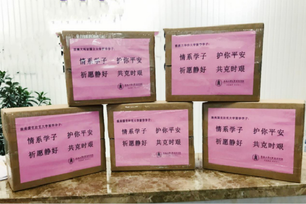 目前,爱心健康防疫包已顺利送到学生手中,海外留学学子在收到口罩后,纷纷给学院老师发来消息,感谢学院老师的关心与帮助,他们会在特殊时期共同加油,共渡难关,做好自身防护和学业规划,遵照学院普及的科学防疫措施和专家建议,做好居家抗疫,努力完成学校安排的网上课程,用自身力量为防疫大局做贡献,以实际行动诠释“全球视野,家国情怀”。