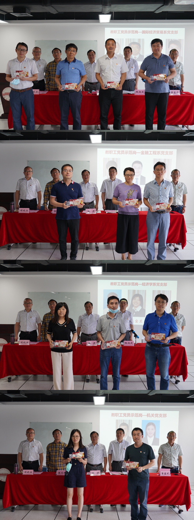 随后,迎“七一”学院党委表彰大会隆重举行,此次大会旨在宣传先进,树立典型,推广经验,促进发展。大会对评选出的“党员示范岗”进行了授牌表彰,为“学习强国”平台学习积分赛先进个人颁发了证书和奖品。获奖党员纷纷上台领奖,表示要珍惜荣誉,谦虚谨慎,再接再厉,再创佳绩,以实际行动为党旗增辉,此次活动激励了全体党员更好的发挥先锋模范带头作用。