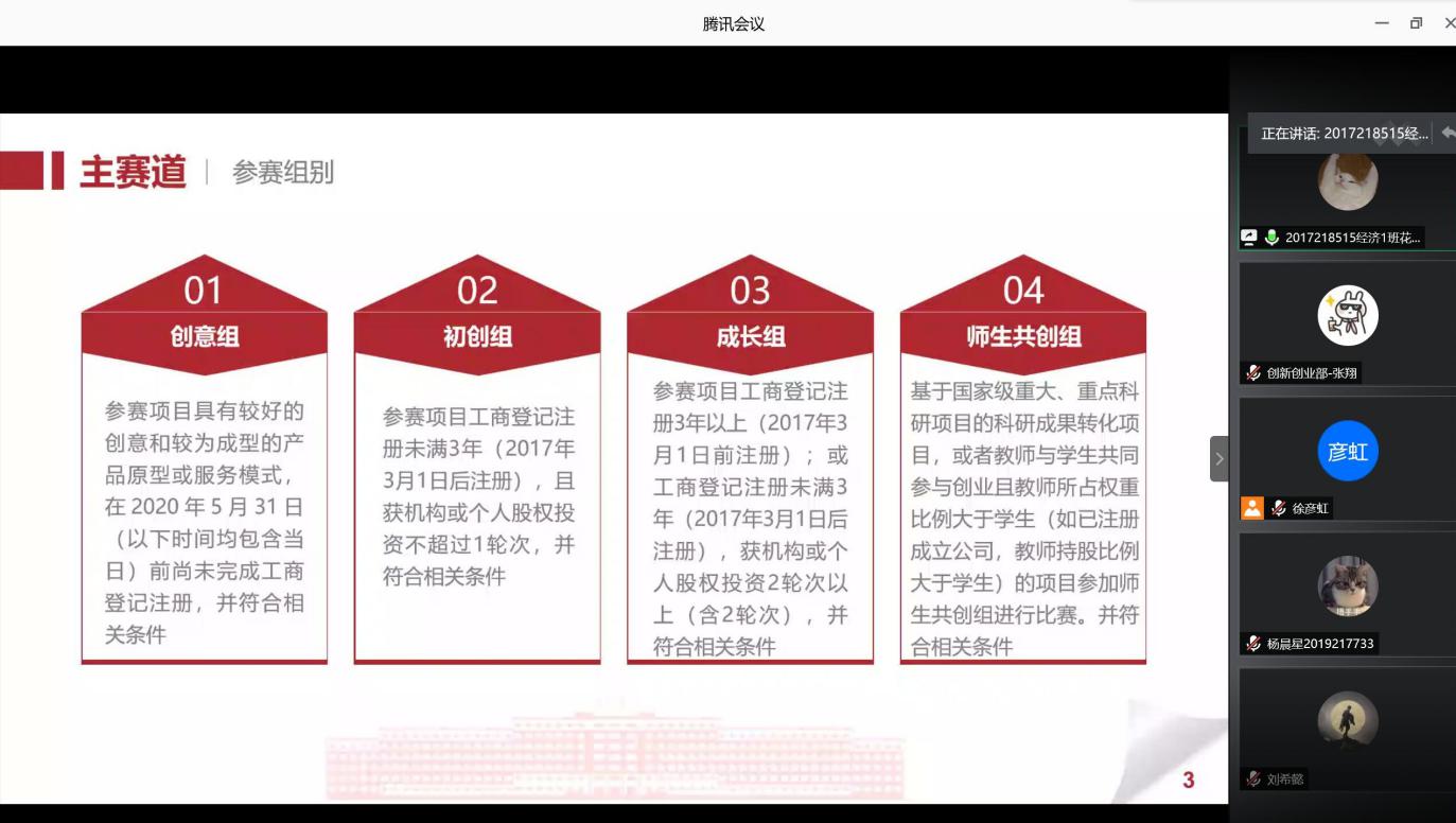 为了进一步增强学生创新创业能力,提高参加“互联网+”大学生创新创业大赛的积极性,6月30日下午4时,必赢官网经济与贸易系线上组织召开了第六届“互联网+”大学生创新创业大赛动员会,系主任黄顺武老师、系团总支书记刘银红老师及辅导员夏芬老师均参加了本次动员会。